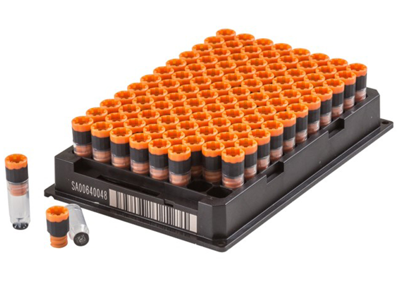 The 0.3ml Dual-coded Tube, 96-format, Internal Thread features a 2D code and human readable number on tube base, allowing compatibility with low throughput manual, semi-automated or fully automated workflows on integrated platforms.