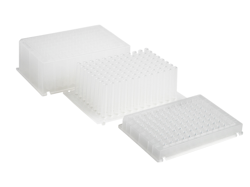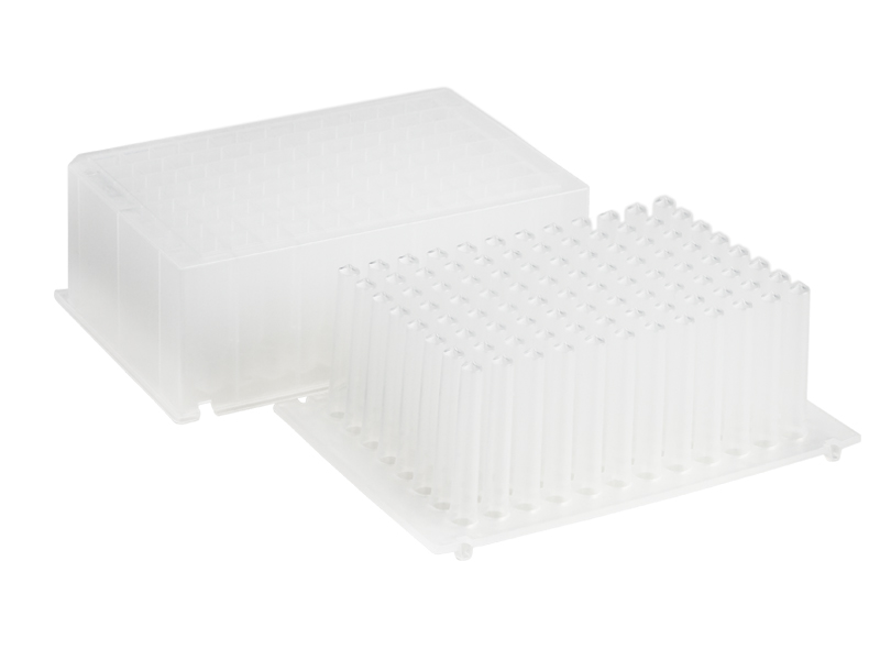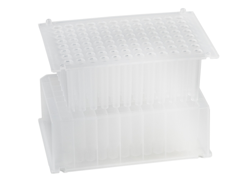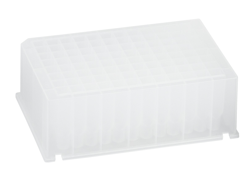 96 square deep well plates specifically designed for use with KingFisher™ Systems, ideal for high-throughput nucleic acid sample prep. For a complete workflow, to be used with the compatible shallow microplate and tip comb.