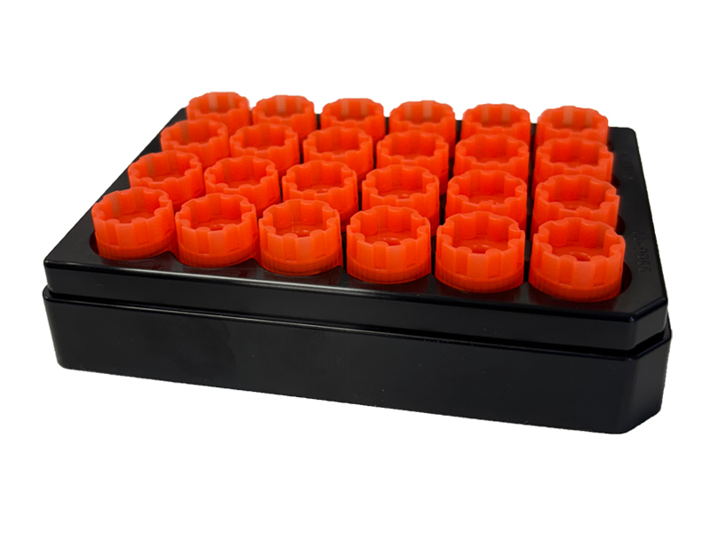 Azenta Life Sciences cap carriers enable automated capping of 24-format sample storage tubes, leading to improved process efficiency and allowing batch filling of tubes prior to capping.