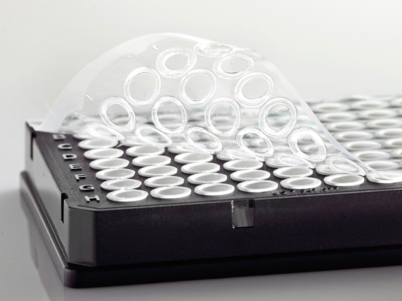 Heat sealing film that seals to PP, PE, PS, and PC plates. Fit for imaging (such as qPCR, colorimetric assays), high temperature uses (such as PCR), low temperature uses (storage).