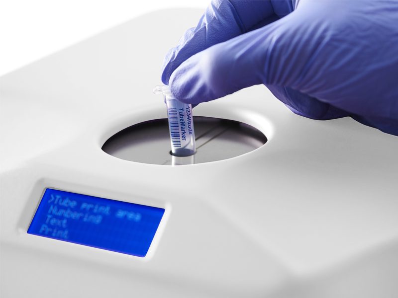 - Prints directly on the surface of plastic laboratory tubes; labels and stickers are not required