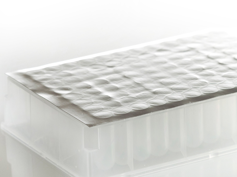 Adhesive sealing aluminum foil recommended for long-term compound storage (samples containing DMSO can be stored for up to 5 years).