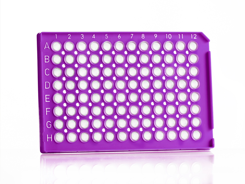 96 well semi-skirted plates with standard profile wells, designed for use on ABI® thermal cyclers and sequencers (standard blocks) with no adapters necessary. Rigid frame eliminates warping and distortion during PCR. Ideal for use with robotic systems.