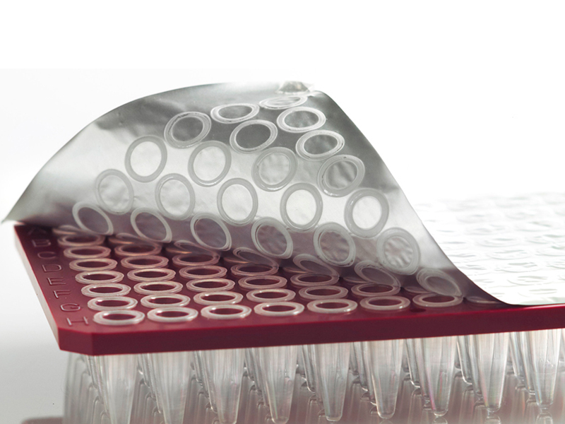 Heat sealing foil that seals to polypropylene and COC plates. Fit for high temperature uses (PCR), room and cold temperature storage.