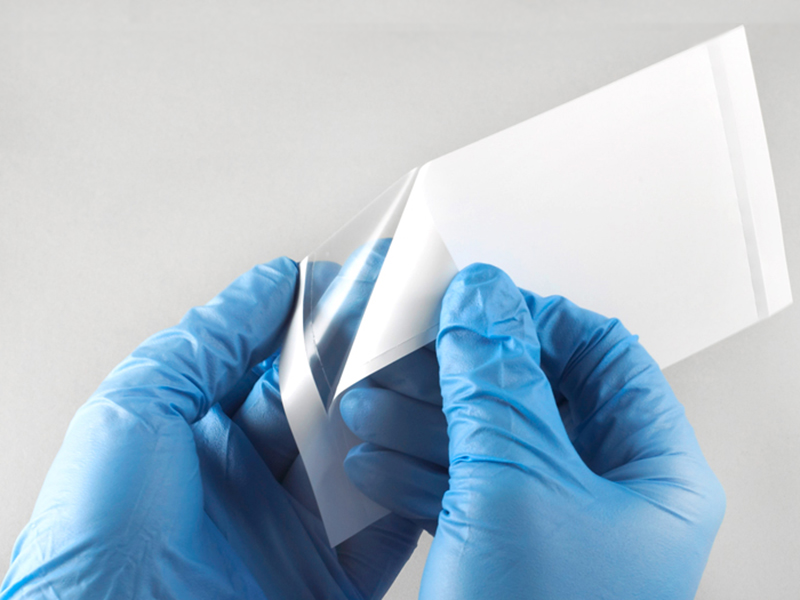 Adhesive sealing film, developed for optical applications, particularly qPCR, and other imaging techniques including crystallization.