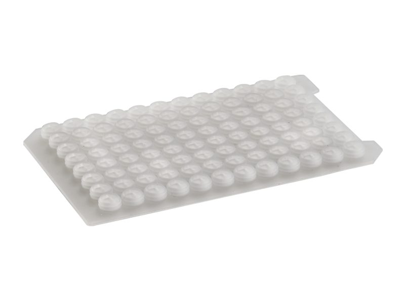 Clear cap mats made of silicone rubber, durable to high temperatures. For sealing microplates used for high-temperature storage to protect samples from evaporation, meeting lab experiment & clinical diagnostics standards.